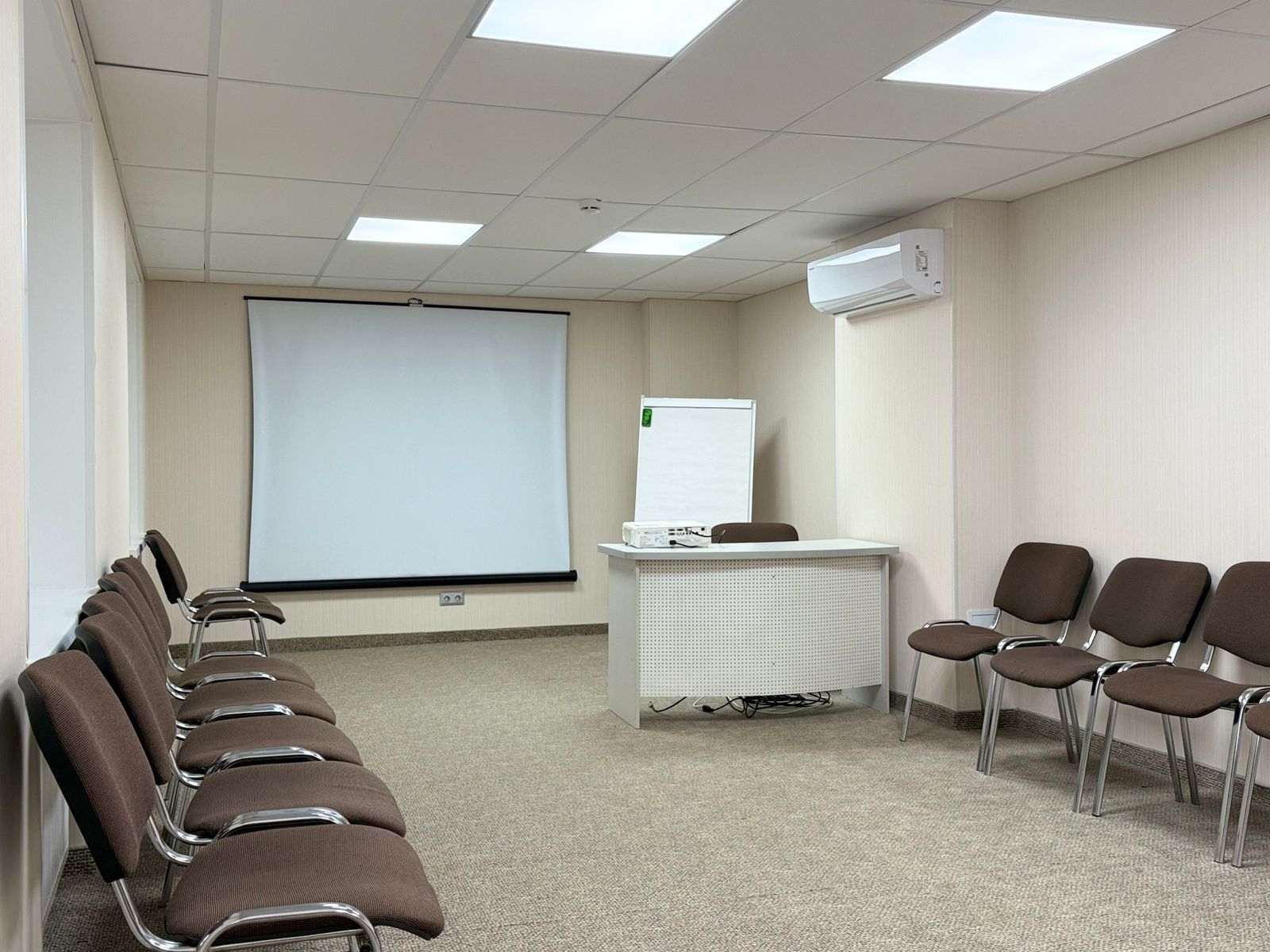 Конференц-зал, идеально подходящий для проведения деловых встреч, семинаров и презентаций. Продуманная планировка и современное оснащение создают оптимальные условия для продуктивной работы